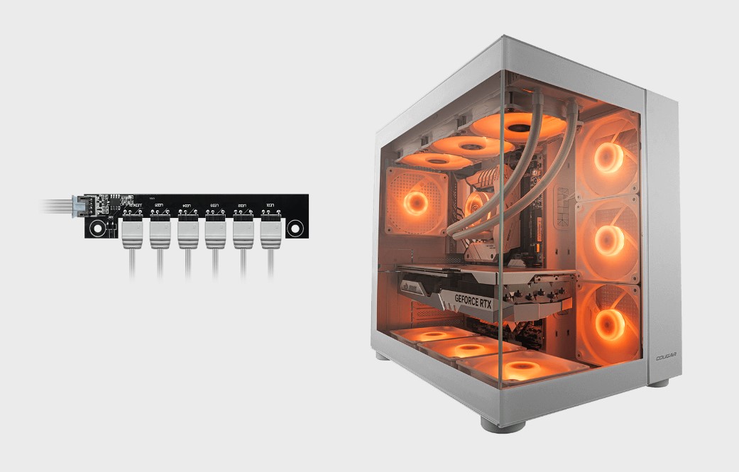 Інтегрований універсальний концентратор вентиляторів забезпечує плавну синхронізацію RGB-підсвічування вентиляторів.