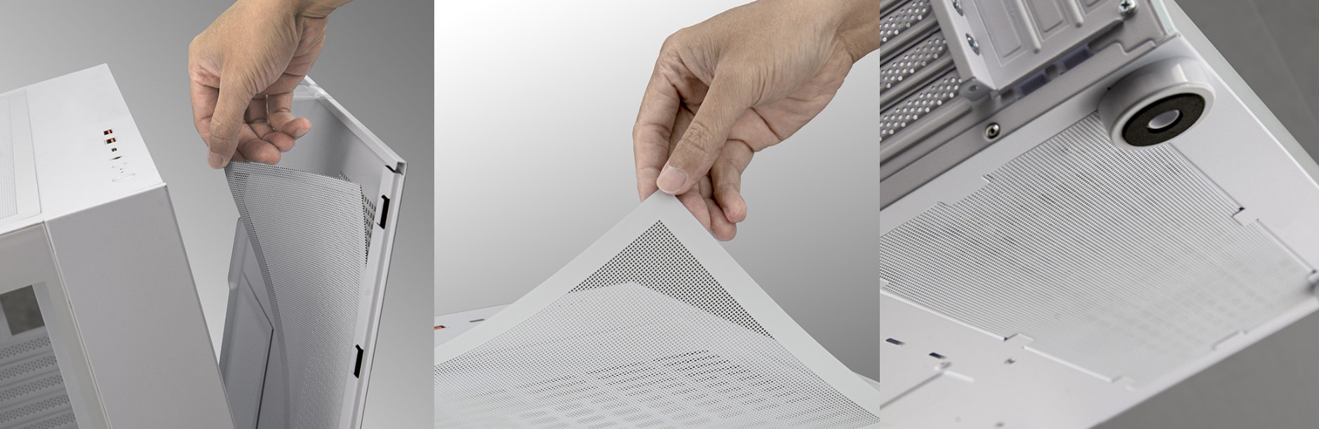 Пилозахисна кришка на трьох вентильованих сторонах ефективно запобігає потраплянню пилу всередину, зберігаючи чистоту компонентів. Верхній та правий фільтри кріпляться магнітами, що полегшує їхнє зняття та обслуговування.