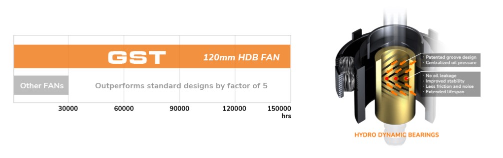 Порівняно з іншими типами вентиляторів, вентилятор з HDB-підшипниками вважається найкращим у своєму класі за рівнем шуму під час роботи та очікуваного терміну служби. Гідродинаміка значно знижує тертя та вібрацію, що призводить до підвищення надійності та тихішої роботи.