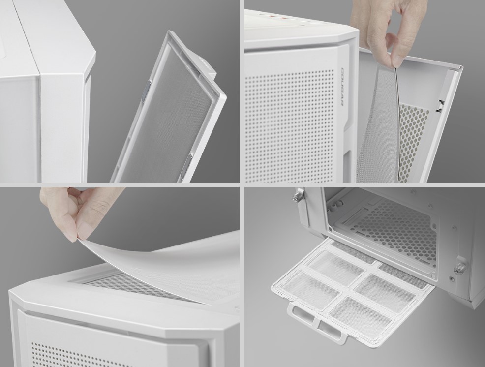 Чотирикутні пилозахисні екрани захищають від частинок пилу та забезпечують чистоту та ефективність системи. Магнітні екрани на передній та правій сторонах доповнюють стандартну магнітну верхню та висувну нижню кришки, забезпечуючи простоту встановлення та очищення без шкоди для захисту.