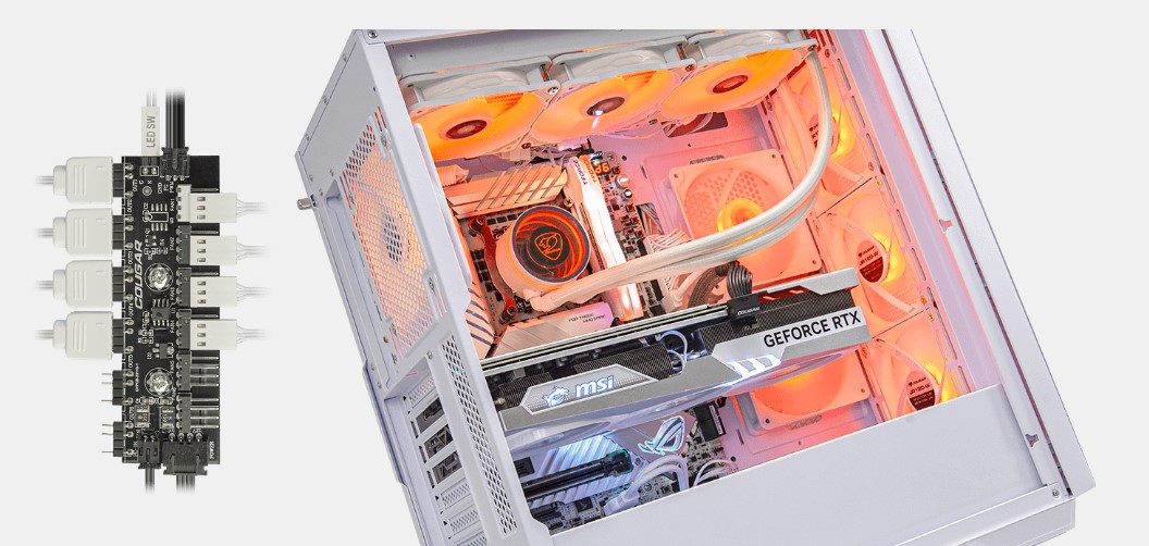 Вбудований універсальний концентратор вентиляторів, передбачає апгрейд із 3-контактних вентиляторів на 4-контактні PWM-вентилятори, що забезпечує плавну координацію швидкості вентилятора та RGB-підсвічування.