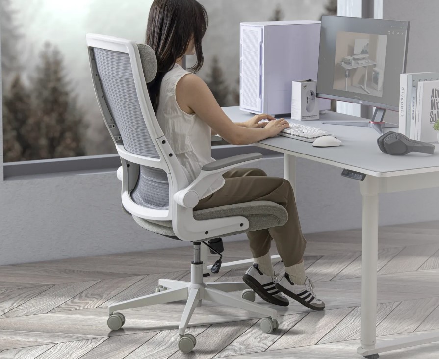 Потрібно трохи більше місця? Відкидні підлокітники легко прибираються — ідеально, коли вам потрібна свобода рухів або потрібно підсунутися ближче до столу.
